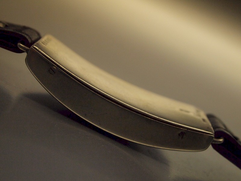 This watch is something quite interesting as the way to wear it is totally different from the norm. The strap is made of one long part with a special locking piece attached to one oend of the strap that slides into the hooded lug at 6:00! MADE BY OMEGA FOR BOUCHERON.
