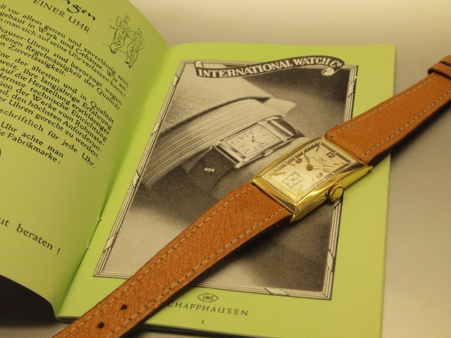 IWC 18K SOLID GOLD LONG ART DECO WITH BEAUTIFUL VINTAGE STRAP & BOX