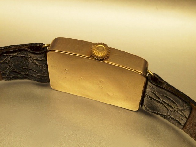 D/ Original dial with minimalist art deco design. Arabic numerals 3,6,9 & 12. Original blued steel hands set. C/ Original 18k solid gold case in MINT MINT condition with super clear hallmarks, signature & reference number. Original crown. M/ Original mechanical winding movement keeps accurate time.