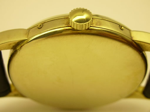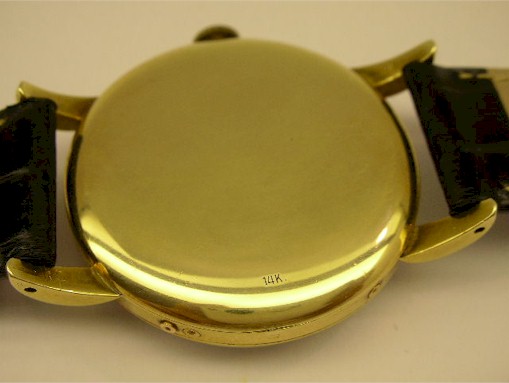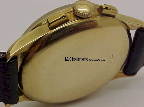 14K inscription and on the edge of the case at 9:00, you will also see a