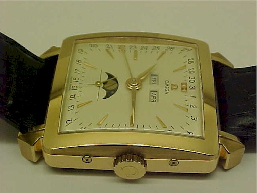 o'clock with a moonphase indication. One similar model was sold for CHF 17,700 swiss franc (about SING$24,000) in Antiquorum OMEGAMANIA Auction.