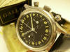 D/ Original beautiful condition dial with 3 black registers. Original hands set matching the applied steel markers. C/ Original Stainless steel case. Two-body, “Pilot-line”, massive, polished and brushed, inclined bezel coated in black PVD, integral crown and pusher guard, hooded lugs, screw-down back. Diameter is 44.5 x 51 mm. Thickness 14.6 mm. M/ Original 17 jewels, mechanical winding movement in very clean condition and keeping accurate time and all chrono functions work properly. IT IS NOT SOMETHING FOR THE FAINT HEARTED. WELCOME TO THE DARK SIDE & MAY THE FORCE BE WITH YOU........ |