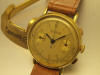 Beautiful condition 1940s 14k Solid Gold case UNIVERSAL COMPAX 3 registers chronograph, screw back case + Box. D / Beautiful NEAR MINT Condition Original dial with 3 registers. Original hands set matching the markers perfectly. C/ Original 14k solid yellow gold THICK & HEAVY screw back case with full hallmarks & reference. Original crown and pushers. M/ Original UNIVERSAL signed mechanical winding cal.291 movement keeps accurate time & all chrono functions work properly.