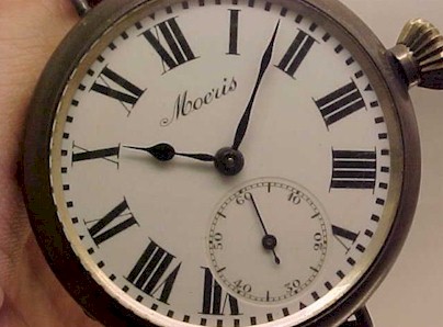 An EXTRA LARGE huge silver watch with PERFECT ENAMEL dial from Moeris in superb condition. Large hinged silver case with charming silver patina. Beautiful original MINT porcelain dial with no hairline crack or chip. Original hands too. Perfect porcelain dial is a dream of many watch collectors, this one is huge and charming measures 42mm excluding and 48 including crown and 48mm from lug to lug. A very Hard to find JUMBO size enamel/porcelain dial Silver watch Ca 1902s. This is the FIRST vintage watch (#1) I purchased years ago and is now part of some permanent displays in my humble gallery. Each time I look at this timepiece, it reminds me of my humble youth and brings back lots of old sweet memories .....