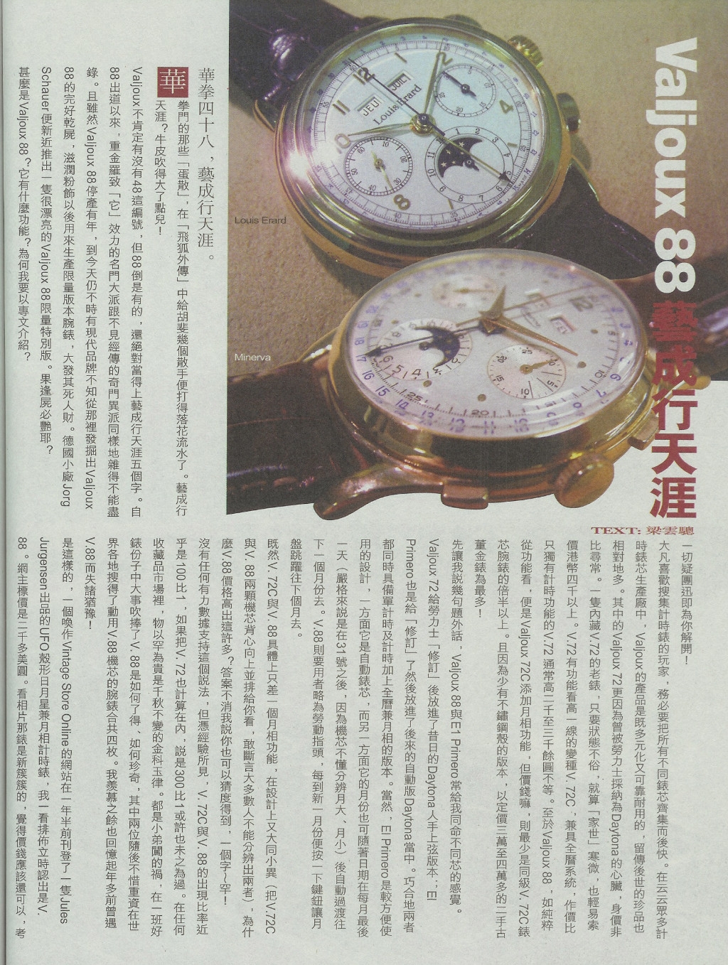 New Old stock condition stainless steel case with sharp edges. Bet you have not seen many moonphase chronos in a cushion case and in this NEW OLD STOCK Mint condition?!?!?! WELL, they are all extinct now like dinosaurs.... Beautiful 100% MINT PERFECT Condition Silver dial with blue pointer calendar hand, apertures for day and month. Three registers for hour, minute chrono registers and sub second register above the smiling moonphase which has aged nicely over the years and resemble one recent moonphase model launched by Vacheron Constantin a few years ago. HIGH grade Valjoux 88 Tripledate moonphase chronograph mechanical winding movement. Keeps perfect time and all chronograph functions work properly. VALJOUX 88 MOVEMENT IS THE MOST SOUGHT AFTER & COLLECTIBLE MODEL FOR TRIPLEDATE MOONPHASE CHRONO !! THIS EXACT ITEM WAS FEATURED IN A HONG KONG MAGAZINE (SEE COPIES OF MAGAZINES), TOGETHER WITH SOME OF MY VALJOUX 88 CHRONOS SOME 4 YEARS AGO.