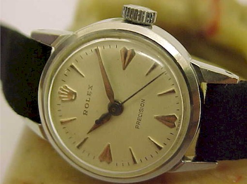 A VERY COLLECTIBLE Vintage ROLEX PRECISION. Full stainless steel case with full rolex hallmarks and signature. Unique dial design with HEART (LOVE) shape markers at 6,6 & 9 o'clock. Original matching hands. Original ROLEX Crown. Fitted with an original Rolex Velvet strap and original Rolex Steel buckle !!!