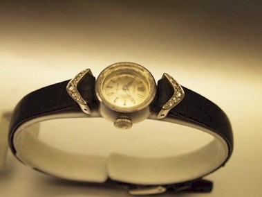 AN EXTREMELY RARE MISS TUDOR - STRELING SILVER CASE AND BANGLE WATCH. D: Silver/white dial signed with TUDOR Shield logo and MISS TUDOR !!!!! & SWISS below 6:00/VI o'clock position. Original Hands. Black roman numerals. C: Original oval Case measures 20mm excluding crown, 22mm including and 45 from lug to lug. Case with only very light signs of wear. Case back is signed STERLING SILVER with a hallmark. Another silver hallmark at 9:00 position. Inner case back is signed TUDOR GENEVA-SWITZERLAND 0.925 & JP 0.925. The interesting part of this watch beside it being MISS TUDOR, must be the way it is designed as both a bangle and a watch. M: Original Mechanical winding movement is signed TUDOR SWISS MADE 17 RUBIES.