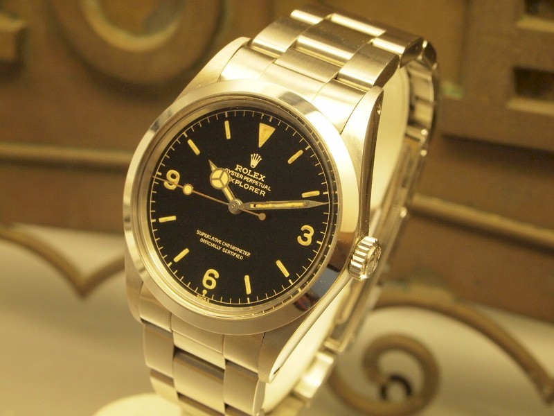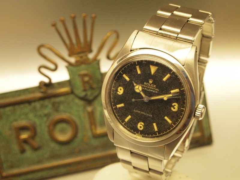 Today, watches like the Submariner, GMT Master, Explorer and Turnograph are known as sports models, but when they were introduced over some 50 years ago, they were created for specific professions and famously known as the TOOLWATCH. The origin of the Explorer dates back to the early 1950s, when Rolex began to test the durability of its bubbleback models as a utility watch. Starting from Ref: 6098 and 6150 which were given to mountaineers and expedition members including members of the British Himalayas expedition who conquered Mount Everest in 1953 and subsequently the name EXLORER was adopted. The watch saw numerous changes over the years, and many models namely 6610, 5500, 5504 and 1016 were introduced. D / BEAUTIFUL Mint condition original dial with very even & nice aging signed ROLEX OYSTER PERPETUAL, EXPLORER, SUPERLATIVE CHRONOMETER OFFICIALLY CERTIFIED SWISS- T < 25. Mint condition Original Mercedes hands set. C/ Mint condition Original stainless steel screwed-down case. Original Rolex signed screw down crown. Fitted with an original thick Rolex heavy bracelet in very good condition. M/ Original movement keeps accurate time.Comes with a Rolex Box. Completely serviced & overhauled by Rolex Service Center Singapore at SING$968 @ 23 Nov 2006. SUPERB MINT CONDITION.