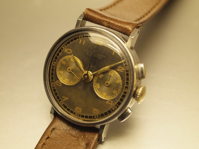 Single button chronograph by TISSOT Ca 1930s. Very nice and complicated dial with good combination of colors, brown, silver and light green makes this watch an interesting watch to collect. As some of you may already know, Omega also has the exact model due to the intimate relationship between the two in the past........