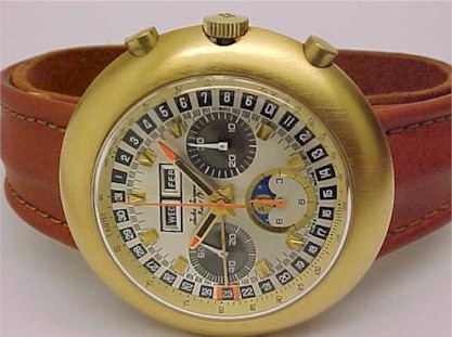 JULES JURGENSEN VALJOUX 88 TRIPLEDATE MOONPHASES CHRONO Is that an UFO?? No it is a Very Rare 1960's Triple Date Valjoux 88 Jules Jurgensen "Jurgentron" TRIPLEDATE Moonphase Chronograph. Viewed by some as the inspiration for the creation of IKEPOD.