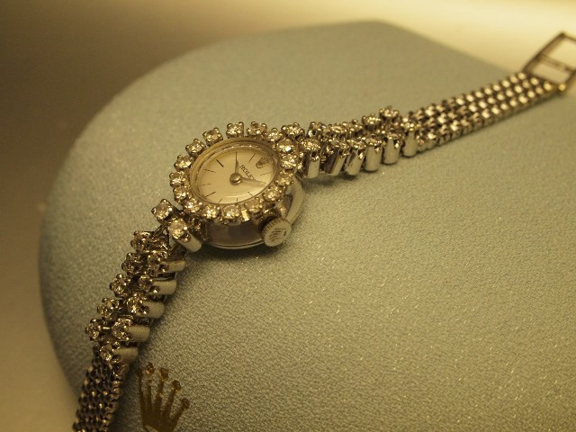 N ice condition beautiful vintage 18k ROLEX PRECISION watch with sparkling diamonds !!!!C: Original 18K yellow gold case with Unique diamond cut design on the side. Inner Case is fully signed, referenced with 18K hallmark. 24 original sparkling diamonds on the bezel. D: Mint condition silver dial signed ROLEX PRECISION SWISS. Applied Rolex crown logo and applied markers. Original hands set. M: Mechanical winding Swiss made ROLEX signed movement, sets, winds properly and keeps accurate time. Fitted with a matching generic gold tone bracelet. A PERFECT GIFT FOR YOUR LOVED ONE, FROM ROLEX. YOU CAN'T GO WRONG WITH THE 24 DIAMONDS...............
